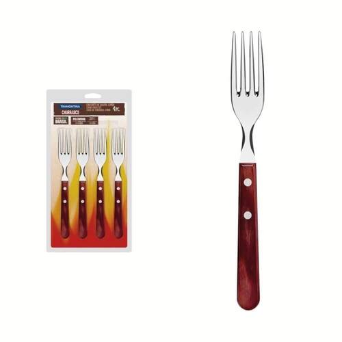 Jogo De Garfos Jumbo Tramontina Polywood Vermelho 4 Peças Talheres de qualidade deixam sua mesa muito mais convidativa. Um exemplo é a linha Polywood que com seus cabos de madeira tratada, faz bonito em encontros mais informais. Recomendações de Uso: Antes do uso:Antes de utilizar o , remova as eventuais etiquetas e lave-o com água e detergente.Durante a lavagem use somente esponja macia, outros tipos de produtos, como palha de aço, poderão riscar ou prejudicar o brilho do aço inox. Enxágue bem a peça a fim de remover totalmente os resíduos dos produtos de limpeza, que por serem abrasivos, podem danificar o inox. Após a lavagem enxugue a peça, pois as substâncias químicas contidas na água poderão causar manchas. Sempre que possível use água quente, pois renova o brilho do talher. Evite o das peças com superfícies quentes, pois podem provocar a descoloração do produto. Quando usar a máquina de lavar louça, recomendamos retirar o talher logo que tenha terminado o ciclo enxaguar, a fim de que os mesmos sejam secados manualmente.- Tenha cuidado ao Manusear produtos cortantes e perfurantes e mantenha-os fora do alcance de crianças.- Foto meramente ilustrativa.- Embalagem litografada. Informações Adicionais: