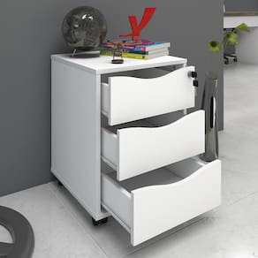 Para quem precisa ter gavetas por perto, seja para estudar ou trabalhar, esse conjunto é uma ótima solução! Os gaveteiros são compactos, então ele pode ocupar o canto que você quiser do espaço, sem atrapalhar seu funcionamento!