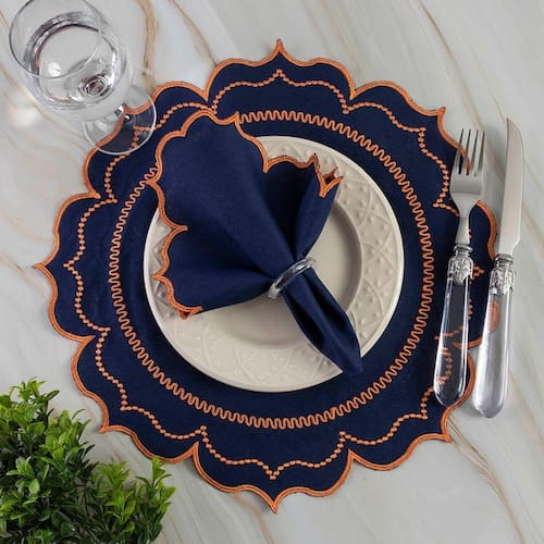Jogo De Guardanapos Sousplat Americano 12 Peças Bordado Decorativo - Itália Marinho - Única