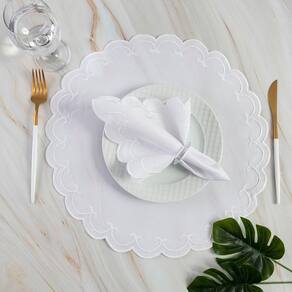 Jogo De Guardanapos Sousplat Americano 12 Peças Bordado Decorativo - Sparta Branco - 100% Poliéster