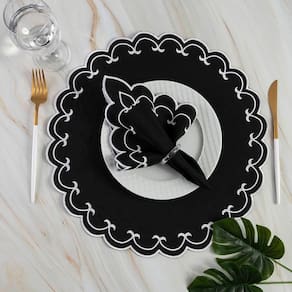 Jogo De Guardanapos Sousplat Americano 12 Peças Bordado Decorativo Sparta Preto 100% Poliéster
