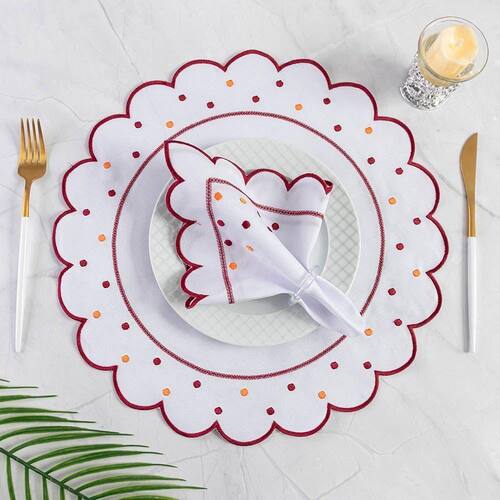 Jogo De Guardanapos Sousplat Americano 12 Peças Bordado Decorativo - Linha Poá Premium Cor Branco Bolinha Bordo