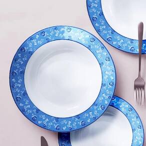 JOGO DE JANTAR 16 PEÇAS SECRET GARDEN AZUL GERMER PORCELANAS