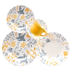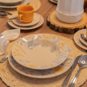 • Dimensões: Prato Raso Ø 26x3,5cm | Prato Fundo Ø 21,5x4cm | Prato Sobremesa Ø 18x2cm | Xícara Ø 9x8cm | Pires Ø 14x2cm
