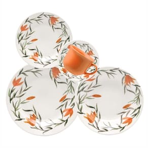 Acompanha o produto: - 6 Pratos Rasos6 Pratos Fundos6 Pratos para Sobremesa6 Xícaras para Chá6 Pires Garantia: - Contra Defeito de Fabricação (90 dias)