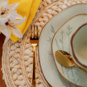 • Dimensões: Prato Raso Ø 27,5x2,5cm | Prato Fundo Ø 22,5x4,5cm | Prato Sobremesa Ø 21,5x2,3cm | Xícara Ø 9x7cm | Pires Ø 16x2cm