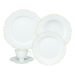 • 6 Pratos Rasos 6 Pratos Fundos 6 Pratos para Sobremesa 6 Xícaras para Chá 6 Pires