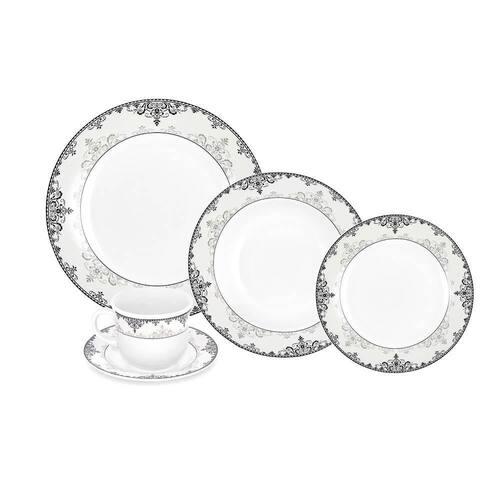 O aparelho de jantar da hauskraft do modelo Liliana vai trazer à sua mesa mais charme e sofisticação nos momentos de suas refeições, suas peças são confeccionadas em porcelana e trabalhadas no formato redondo o que as torna ainda mais especiais, por serem peças de altíssima qualidade e durabilidade. Este conjunto de porcelana tem de tudo para melhorar suas reuniões, comemorações e cerimônias. É composto por 20 peças, sendo 4 pratos de sobremesa, 4 pratos rasos, 4 pratos fundos, 4 xícaras e 4 pires, todos com desenhos florais pretos em suas bordas para agregar na decoração de sua mesa posta!