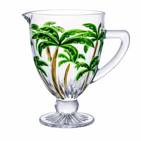 Jogo com jarra e taças em vidro transparente, com delicados detalhes de coqueiros em tons de verde. Um conjunto elegante e moderno, ideal para servir água, sucos e bebidas refrescantes, trazendo charme e sofisticação à mesa posta em qualquer ocasião.