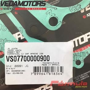 Jogo de junta vedamotors dafra apache 150 Jogo de juntas completo com guarniçoes, retentores de valvulas. Compativel: dafra apache 150 Codigo: vs0770000900 Marca : vedamotors Os jogos de juntas vedamotors , são produzidos com produtos de primeira qualidade , se equiparando aos , e certos casos melhor que o , um grande problema na manutenção da moto , é usar juntas baratas de baixa qualidade isto pode causar vazamentos e despesas, estas não vão te largar na mão. e satisfação. Compra 100% segura com Fórmula moto peças - há 12 anos atendendo melhor o motociclista 7899641818364