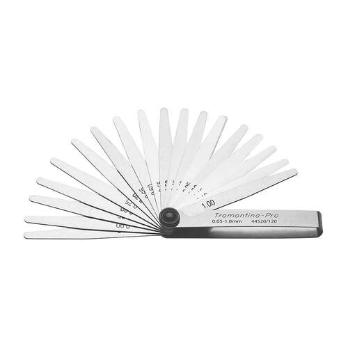 Além dos trabalhos de calibração, as lâminas são muito usadas no controle de folga de equipamentos automotivos, de aviação, a diesel e agrícola. Uso específico em ajustes de tuchos, velas, pontos do distribuidor, verificação de folgas em rolamentos e engrenagens, ajuste de pistões, anéis e pinos, calibração de canais estreitos, etc. Possui sistema de trava que permite segurar firmemente uma ou mais lâminas em posição. Quem é pro usa. Corpo em aço inoxidável. Lâminas em aço alto carbono temperadas. Comprimento das lâminas de 100mm. Acabamento cromado. Jogo com 20 lâminas de espessura de: 0,05. 0,10. 0,15. 0,20. 0,25. 0,30. 0,35. 0,40. 0,45. 0,50. 0,55. 0,60. 0,65. 0,70. 0,75. 0,80. 0,85. 0,90. 0,95 e 1,00 mm. Lâminas aferidas individualmente. Possui sistema de trava que permite segurar firmemente uma ou mais lâminas em posição. As lâminas podem ser facilmente removidas ou substituídas. Utilizado no controle de folga de equipamentos automotivos, de aviação, a diesel e agrícola, trabalho de calibração e experimental. Uso específico em ajustes de tuchos, velas, pontos do distribuidor, verificação de folgas em rolamentos e engrenagens, ajuste de pistões, anéis e pinos, calibração de canais estreitos, etc. Ferramentas produzidas e testadas conforme normas especificas. Além dos trabalhos de calibração, as lâminas são muito usadas no controle de folga de equipamentos automotivos, de aviação, a diesel e agrícola. Uso específico em ajustes de tuchos, velas, pontos do distribuidor, verificação de folgas em rolamentos e engrenagens, ajuste de pistões, anéis e pinos, calibração de canais estreitos, etc. Possui sistema de trava que permite segurar firmemente uma ou mais lâminas em posição. Quem é pro usa.