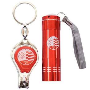 Jogo De Lanterna Com Chaveiro Cortador De Unha - Náutico Super jogo contendo uma lanterna com 9 lâmpadas e um chaveiro de metal equipado com cortador de unha e abridor de garrafas, tudo isso customizado na cor e brasão do Náutico. Material chaveiro: metal; Material lanterna: plástico; Funcionamento: 3 pilhas AAA Marca: Não Informado