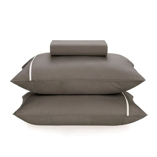 O Jogo de Lençol Noah da Karsten, é fabricado com tecido 100% algodão e 160 fios, tem como características amassar menos, antipilling, maior durabilidade, altamente respirável e hipoalergênico formando assim, um produto liso de qualidade para montar seu cantinho de descanso e que contribui com noites de sono mais tranquilas. Composto por 3 peças, seu corpo liso na cor grafite com filete branco nas fronhas, torna o jogo de cama Noah uma opção clássica e elegante.