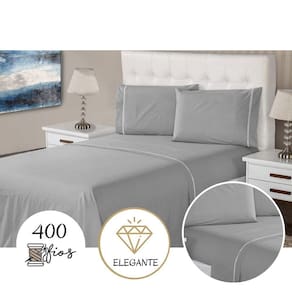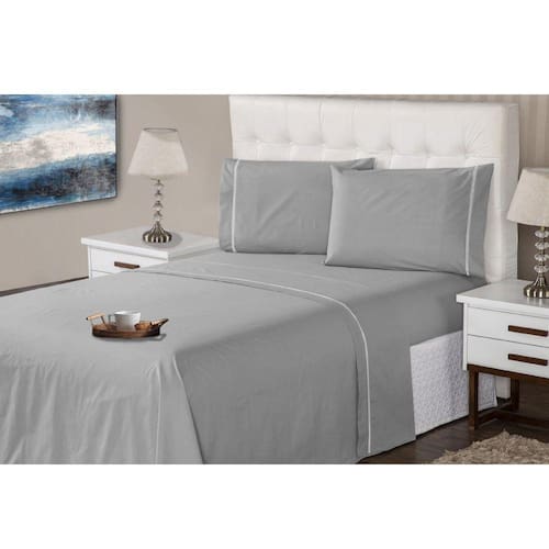 Jogo de Lençol 4 Peças Ponto Palito Queen 400 Fios 1,98 X 1,58 Metros Branco Casa Dona - Prata