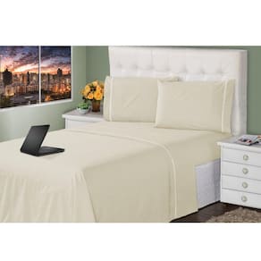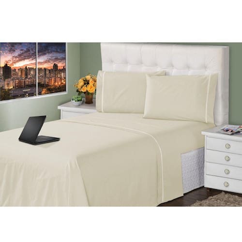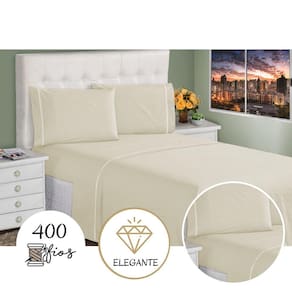 Jogo de Lençol 4 Peças Ponto Palito Queen 400 Fios 1,98 X 1,58 Metros Branco Casa Dona - Bege