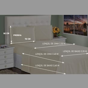 Motivos para Comprar- Jogo de Lençol Parcial ou Completo para sua Cama; - Deixa seu quarto completo; - Perfeito para presentear, pois se trata de um jogo de cama completo; - O material se mantém bonito por muito tempo, não amassa, seca mais rápido; - A qualidade e sofisticação que seu quarto merece; - Possui toque macio, tornando-o mais confortável. CaracterísticasItens Inclusos: 01 Sobre Lençol, 01 Lençol Ajustável 02 FronhasLargura e comprimento: 01 Sobre Lençol 2,60m x 2,40m01 Lençol Ajustável 1,98m x 1,58m x 40cm (Com Elástico)02 Fronhas 70cm x 50cmMarca: Casa Dona Modelo: Ponto PalitoTecido: Percal de Poliéster Quant. Fios: 400 FIOS Composição: 100% PoliésterCuidados na Lavagem- Não utilizar alvejante; - Ao lavar na máquina, usar programa ?delicado?; - Secar à sombra; - Passar com ferro a baixa temperatura; - Não lavar a seco.