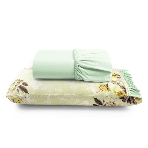 Outro destaque do Jogo de Lençol Afrodite é a fronha com babadinho em percal. O babadinho é um detalhe charmoso que confere elegância à roupa de cama, tornando as fronhas ainda mais bonitas e atraentes.