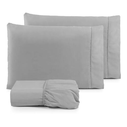 Inclui 1 Lençol com elástico 1,93m x 2,03m x 30cm 2 Fronhas ponto palito 50cm x 70cm