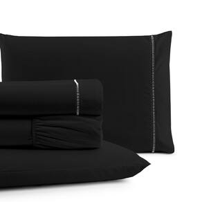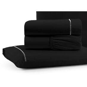 Jogo de Lençol Cama Queen 4 peças 100% Algodão Percal 180 fios Ponto Palito - Preto