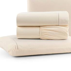 Jogo de Lençol Cama Queen 4 peças 100% Algodão Percal 180 fios Ponto Palito - Palha
