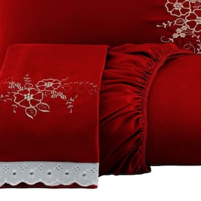 Jogo de Lençol Cama Solteiro 2 Peças com Elástico Bordado - Vermelho