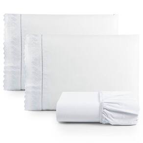 Jogo De Lençol Casal 3 Peças Basic Percal 180 Fios Lese Bordado Inglês - Branco - Única