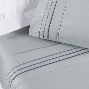 Jogo De Lençol Casal 4 Peças Allegra Bordado Cinza Geada