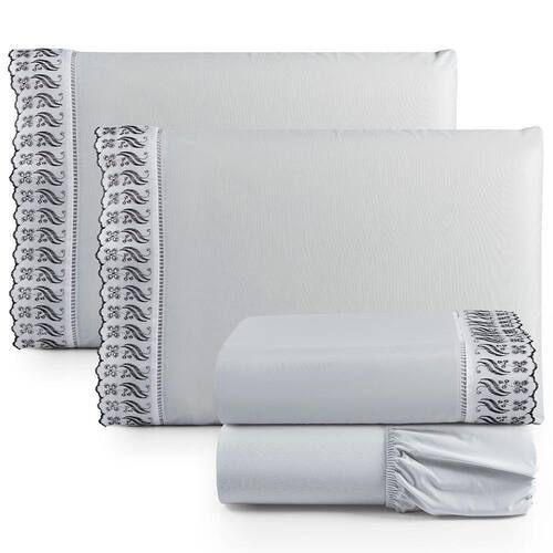 Jogo De Lençol Casal 4 Peças Basic Percal 180 Fios Lese Bordado Inglês - Cinza