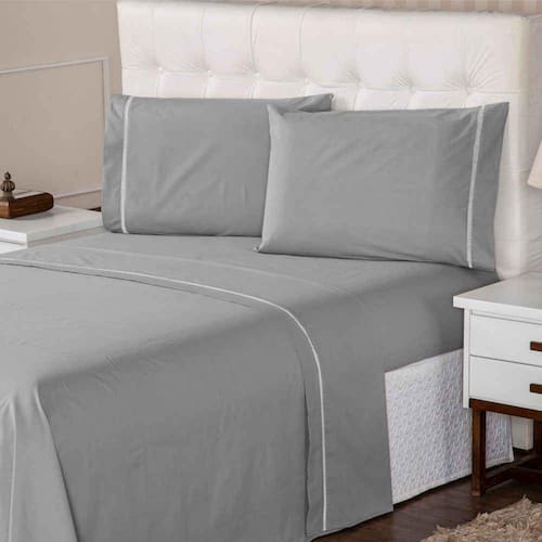 Jogo de Lençol Casal 400 Fios Percal 3 Peças Ponto Palito 100% Algodão Aconchego Prata Casa Dona