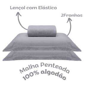 Jogo de Lençol Casal Algodão 3 peças Rolinho Malha Image Liso Buettner - Cinza