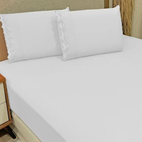 Jogo de Lençol Casal Padrão Bordado Ingles Micropercal 300 Fios Toque de Algodão 3 Peças - Branco
