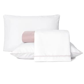 O kit conta com fronha e sobre lençol na cor branca. A fronha possui fechamento em envelope, o que facilita a retirada para lavagem. O jogo também acompanha um lençol com elástico nas 04 laterais.