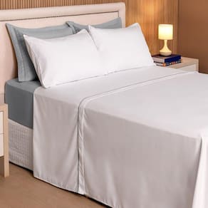 O kit conta com fronha e sobre lençol na cor branca. A fronha possui fechamento em envelope, o que facilita a retirada para lavagem. O jogo também acompanha um lençol com elástico nas 04 laterais.