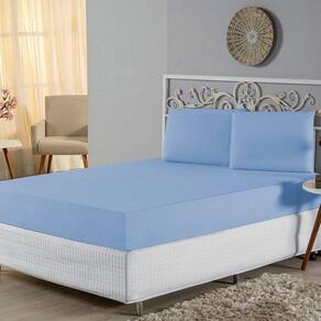 Jogo De Lençol Casal Padrão Malha 100% Algodão 3 Peças Cor Azul Bebe - Única