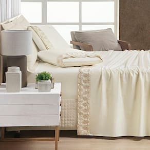 O Jogo de Cama Supreme é o ponto mais alto do conforto, produzido no tecido percal de 400 fios acetinados em puro algodão. Destaca-se pelos detalhes em renda nas fronhas e no lençol de cima, conferindo um toque de sofisticação e delicadeza ao seu ambiente. Além da beleza, sua durabilidade é notável, garantindo noites de conforto por muito tempo.