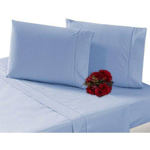 Jogo De Lençol Casal Queen Size 4 Peças 100% Algodão 200 Fios - Azul Claro