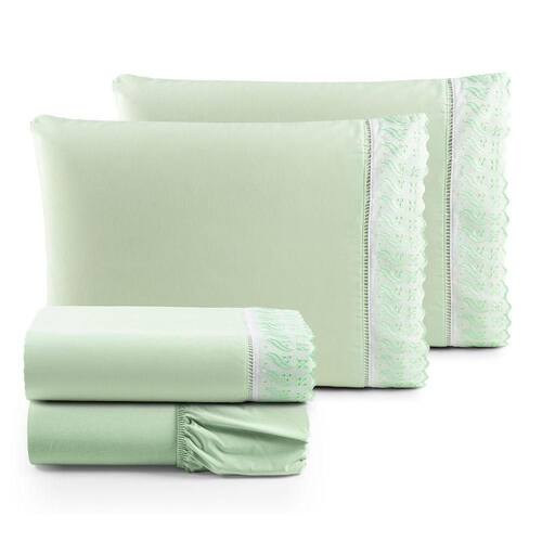 Jogo De Lençol Casal Suave Barrado Lese 4 Peças Barato - Verde