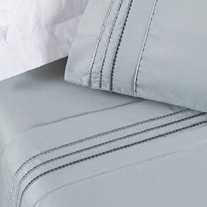 Jogo de Lençol Casal Yara bordado 4 peças Cinza