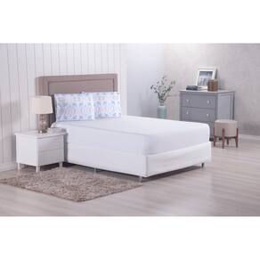 QUANTIDADE DE PEÇAS E MEDIDAS APROXIMADAS (COMPRIMENTO X LARGURA): 01 Lençol com elástico: 1,98m Comp. x 1,58m Larg. x 40cm Alt. 02 Fronhas: 70cm Comp. x 50cm Larg.