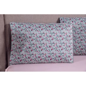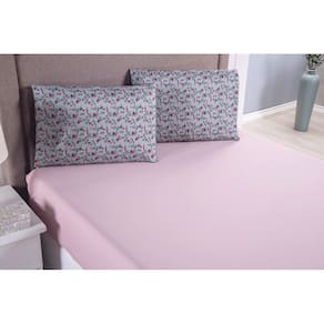 QUANTIDADE DE PEÇAS E MEDIDAS APROXIMADAS (COMPRIMENTO X LARGURA): 01 Lençol com elástico: 1,98m Comp. x 1,58m Larg. x 40cm Alt. 02 Fronhas: 70cm Comp. x 50cm Larg.