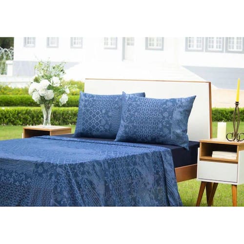 Jogo de Lençol Completo 4 Peças Portallar Cotton Match Listelo Azul/Az Prof Queen