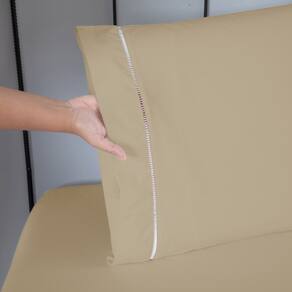 INFORMAÇÕES ESPECÍFICAS: - Detalhe ponto palito nas fronhas e ótimo tamanho de transpasse, evitando que fique saindo do travesseiro; - Jogo de lençol completo, acompanha lençol de cima (virol), podendo usar para se cobrir; - Disponível em 6 opções de cores; - Elástico em volta de todo o lençol de baixo; - Ideal para compor a decoração do quarto, podendo facilmente combinar.