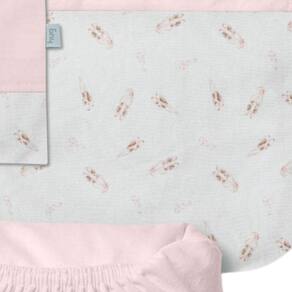 O jogo de lençol 03 peças Hug traz conforto e cuidado para o quartinho do bebê. O kit possui um lençol de elástico, uma fronha e um sobre lençol com vira em suedine estampado. Além disso, o sobre lençol é ótimo para cobrir o bebê. Indicado para berço padrão americano. Diferenciais: Suedine e meia malha com nanotecnologia que agrega maciez e tratamento antibacteriano e antifúngico; Estampa rotativa exclusiva Hug. MEDIDAS: Lençol de elástico: 70cm x 130cm x 14cm Fronha: 40cm x 30cm Sobre lençol: 98cm x 170cm. CARACTERÍSTICAS: Meia malha 100% algodão;