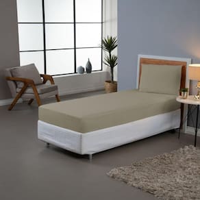 Jogo De Lençol Dia A Dia Liso 2 Peças Solteiro 80% Algodão - 20% Poliéster Percal 140 Fios Cor:cáqui