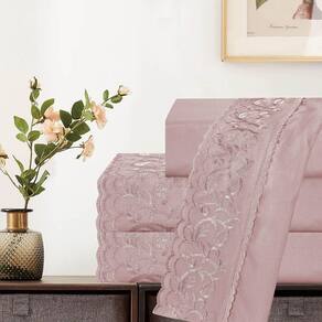 Com excelente caimento e durabilidade, o lençol oferece uma sensação aconchegante durante o sono, além de ser fácil de lavar e manter. O Jogo Dunna é ideal para quem valoriza o conforto premium aliado à beleza dos detalhes artesanais.