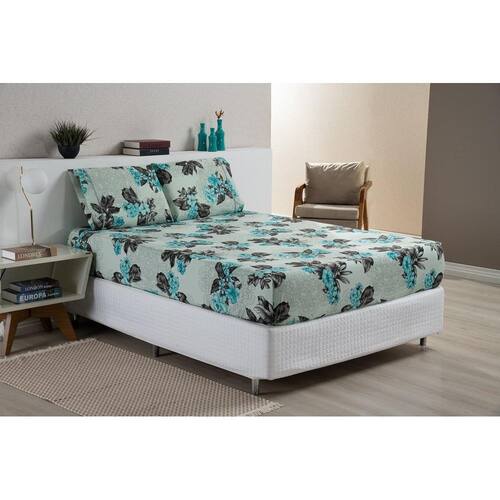 Jogo De Lençol Estampado 80% Algodão Para Box Casal Thifany