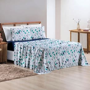 Jogo De Lençol Grace Solteiro 3 Peças Malha 100% Algodão Macio Estampado - Azul Geométrico