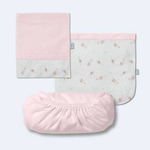Confeccionado em 100% algodão, o conjunto na cor rosa magia possui três lindas peças de toque macio e suave, trazendo uma deliciosa sensação de bem estar e uma estampa super fofinha.