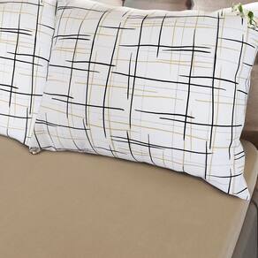Jogo de Lençol KazzaVip Queen Malha 100% Algodão Lençol com Elástico Bruxelas 3 Peças Bege