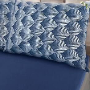 Jogo de Lençol KazzaVip Queen Malha 100% Algodão Lençol com Elástico Gante 3 Peças Azul